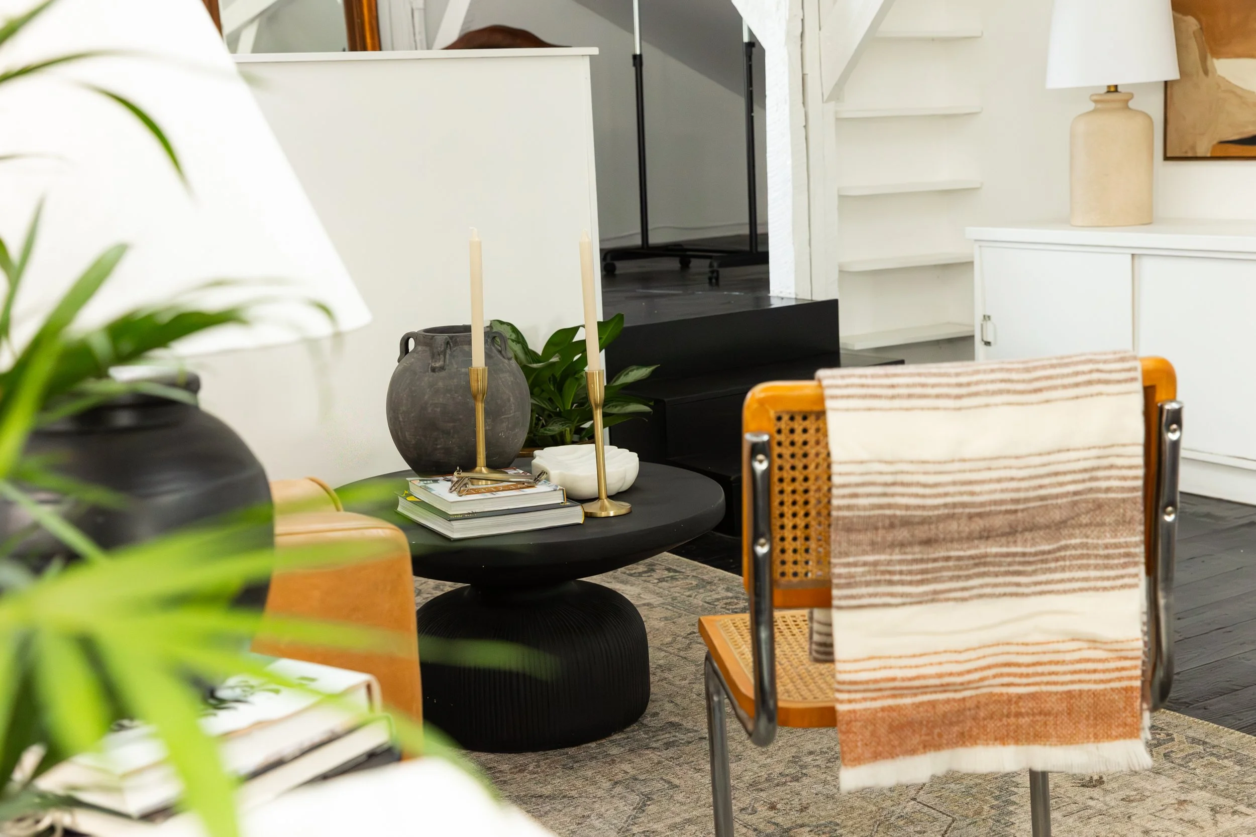 Using a mix of new and secondhand furniture and decor, we were able to create a warm and welcoming environment that feels like home and works beautifully for our local creative community.