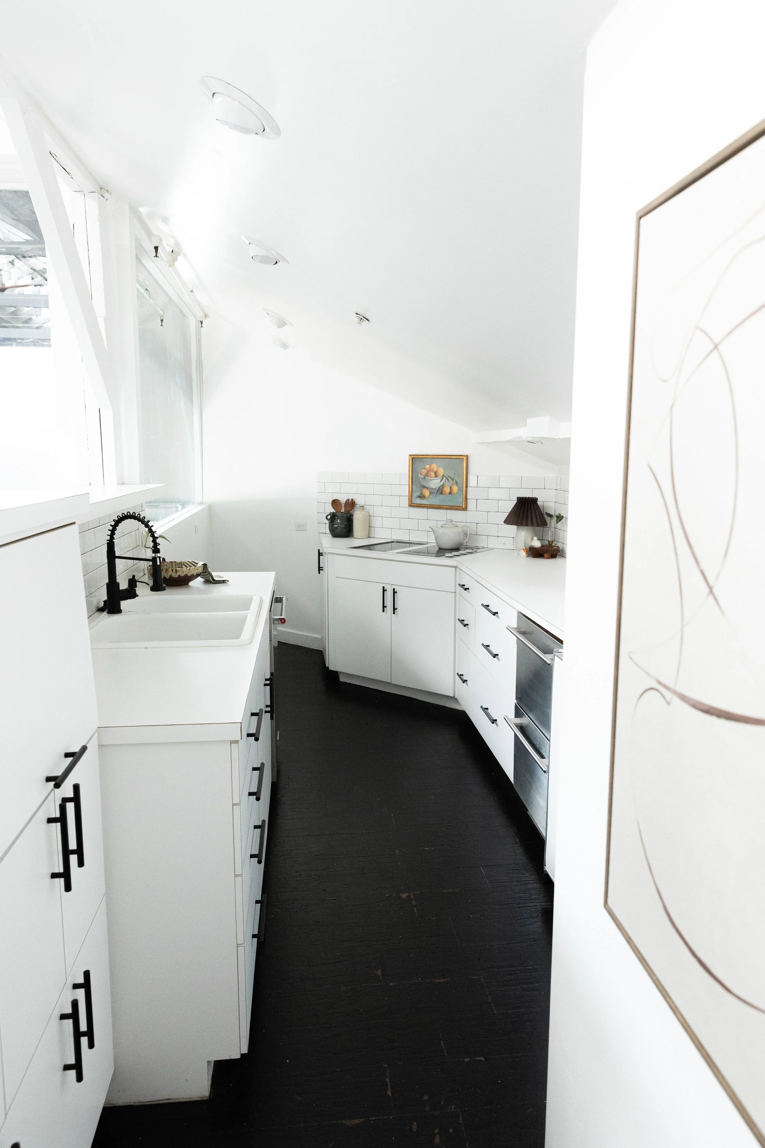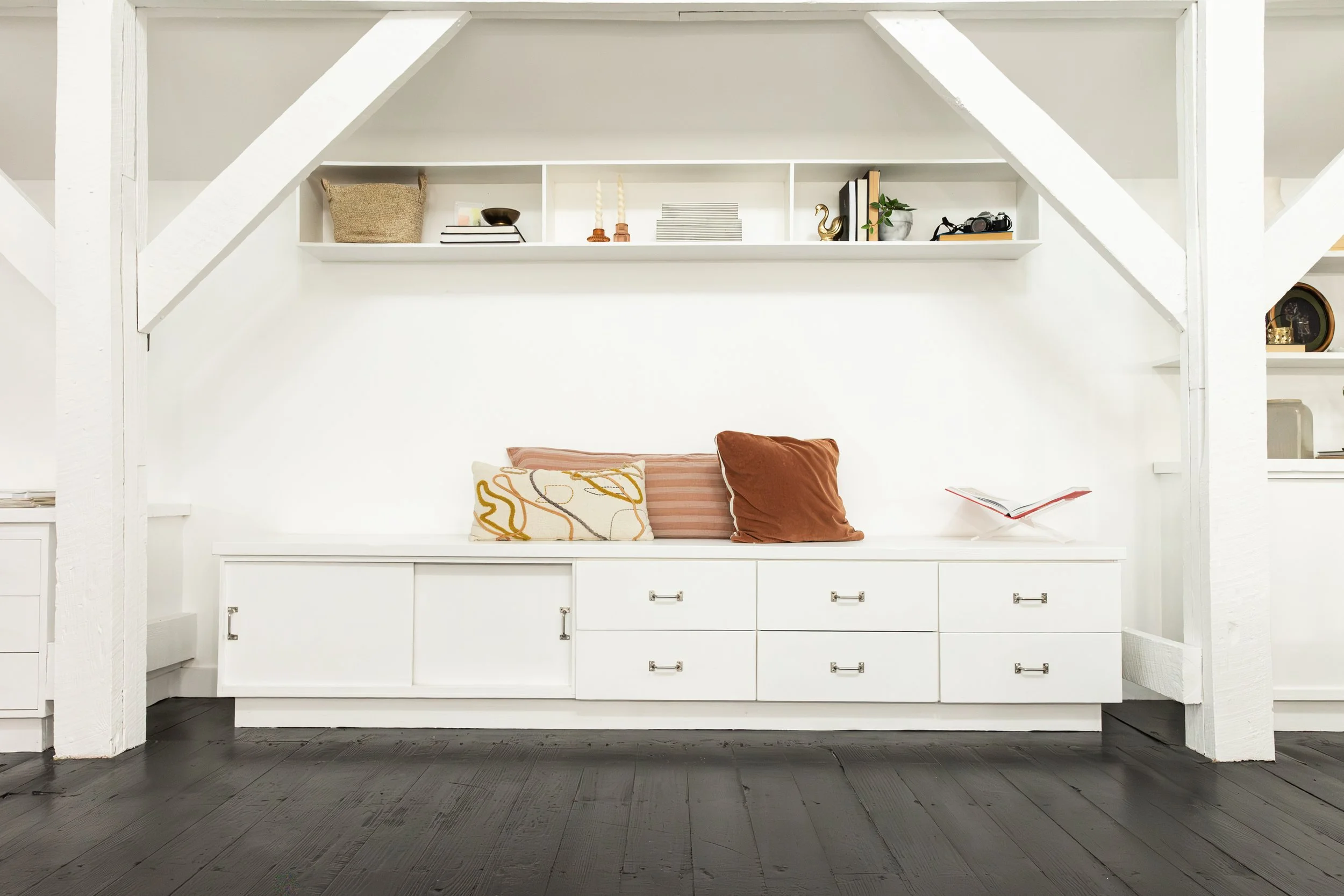 While much of the space was left open for more flexibility, we had the opportunity to create numerous lifestyle backdrops for photographers and content creators to utilize in the upstairs studio apartment.